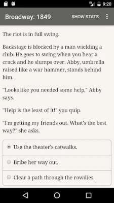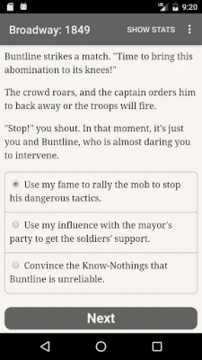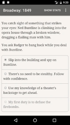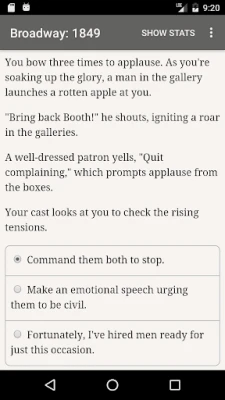 Pășește în efervescenta lume a teatrului newyorkez din 1849 cu "Broadway: 1849", o aventură narativă interactivă creată de Robert Davis. Această experiență captivantă se desfășoară exclusiv prin cuvinte, fără a apela la grafică sau efecte sonore, punând în valoare puterea nelimitată a propriei tale imaginații. Vei prelua frâiele unui teatru, navigând prin decorul opulent, dar periculos, al epocii de aur a Broadway-ului. Fiecare decizie îți va modela destinul și pe cel al scenei pe care o vei domina, într-un vârtej de intrigă și artă.