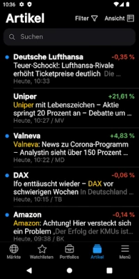 Păstrați controlul absolut asupra investițiilor dumneavoastră prin funcționalități avansate precum listele de urmărire personalizabile și portofoliile virtuale. Creați multiple liste de supraveghere și primiți notificări push instantanee ori de câte ori echipa editorială a DER AKTIONÄR analizează un activ de interes pentru dumneavoastră. Listele se sincronizează automat prin contul dumneavoastră Börsenmedien, oferindu-vă o imagine de ansamblu precisă. Experimentați strategii de investiții fără riscuri, simulându-le în portofolii fictive, înainte de a le aplica în realitate. Aceste instrumente sunt completate de grafice detaliate, ce pot fi vizualizate pe perioade de 1 zi, 1 lună, 6 luni, 1 an și 3 ani, prezentând date procentuale și absolute. Baza de date cuprinde mii de acțiuni din indici globali de referință precum DAX, MDAX, TecDAX, Dow Jones, S&P 500, Nasdaq 100, Nikkei 225, dar și mărfuri, valute și derivate esențiale.