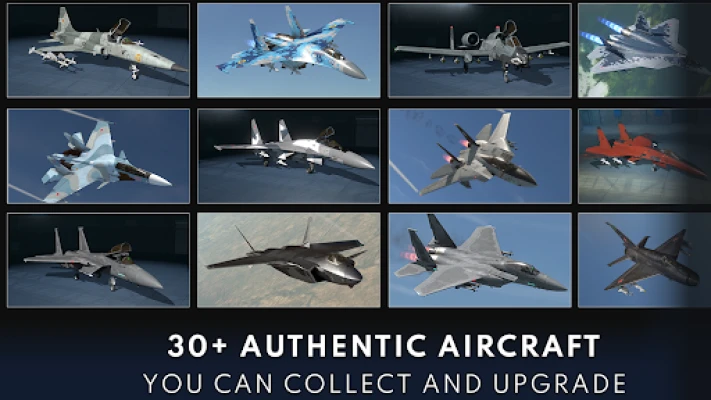 Preia controlul asupra unei flote impresionante de avioane de luptă, de la legendare aeronave de război la cele mai moderne jeturi, inclusiv modele iconice precum F-16 Fighting Falcon, F-35 Lightning II și Su-57 Felon, toate licențiate oficial de producători renumiți precum Boeing și Lockheed Martin. Personalizează fiecare aeronavă cu decaluri și vopsele unice, apoi perfecționează-i performanța prin peste 20 de niveluri de upgrade, pentru a-ți asigura un avantaj decisiv în luptă. Navighează prin hărți spectaculoase, de la canioane deșertice la insule vulcanice, și coordonează-ți atacurile cu echipa ta, folosind abilități speciale pentru a domina inamicii.